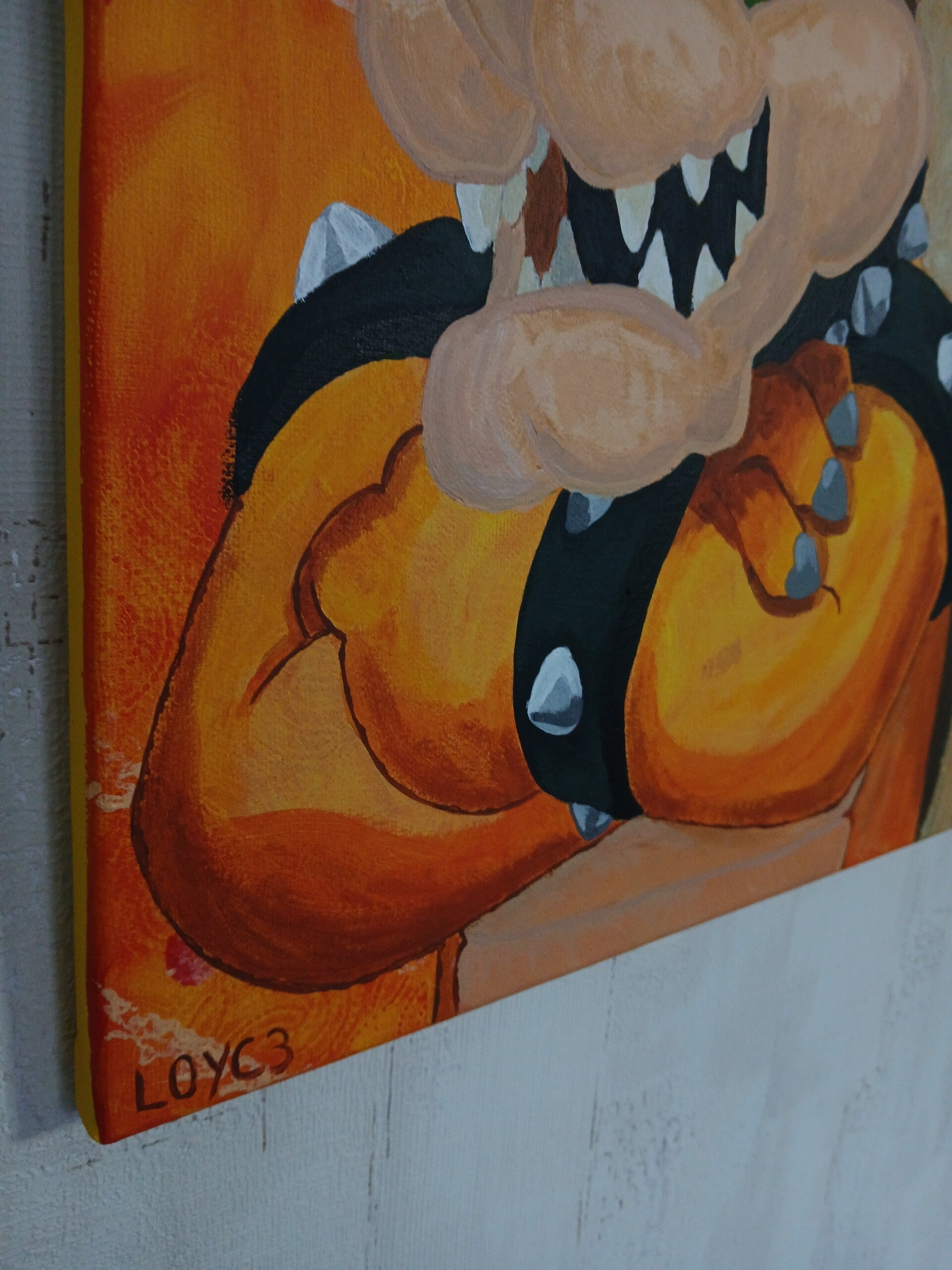 Toile peinte à la main du vilain méchant personnage 'Bowser' dans Mario Bros.